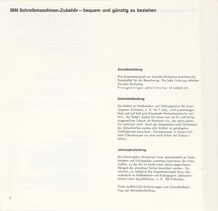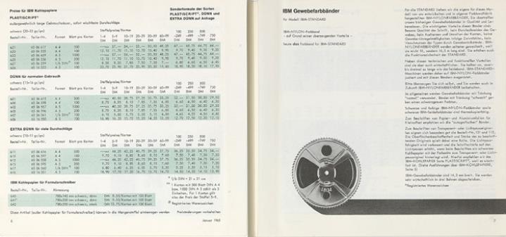 Preisliste zu IBM Zubehör für Schreibmaschine, Diktiergeräte, Abrechnungsmaschinen; Stand Januar 1965 Nr. 45985