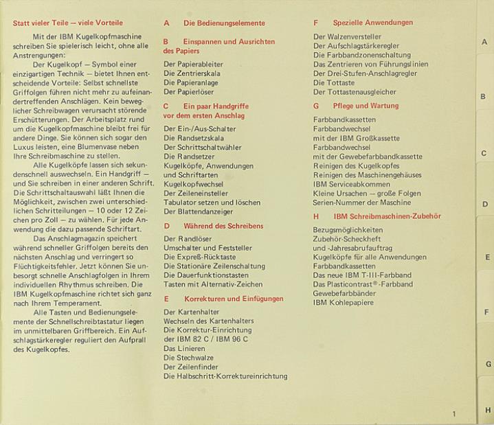 Bedienungsanleitung für Kugelkopfschreibmaschine IBM 82 und IBM 96 mit Schriftartenverzeichnis als Beilage Nr. 45117-7