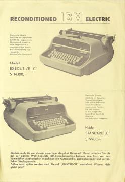 Prospekt für elektrische Schreibmaschine IBM Executive C / Standard C mit Schriftartenverzeichnis