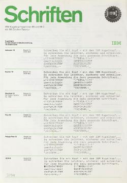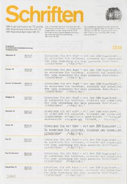 Schriftartenverzeichnis für Kugelkopfschreibmaschine IBM 96/96 C Nr. 45314-2