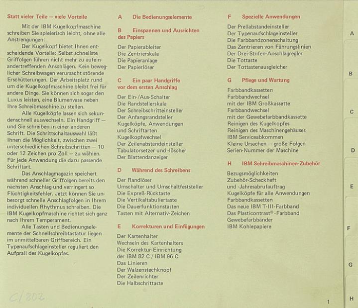 Bedienungsanleitung für Kugelkopfschreibmaschine IBM 82 / IBM 96 mit und ohne Korrektureinrichtung Nr. 45117-12 (ident mit C1240)