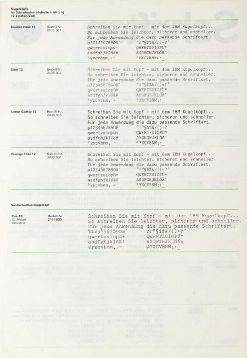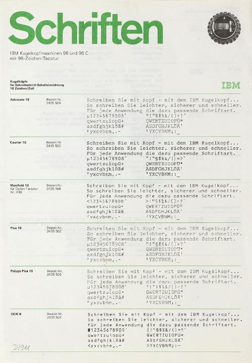 Schriftartenverzeichnis für IBM Kugelkopfmaschine 96 und 96C