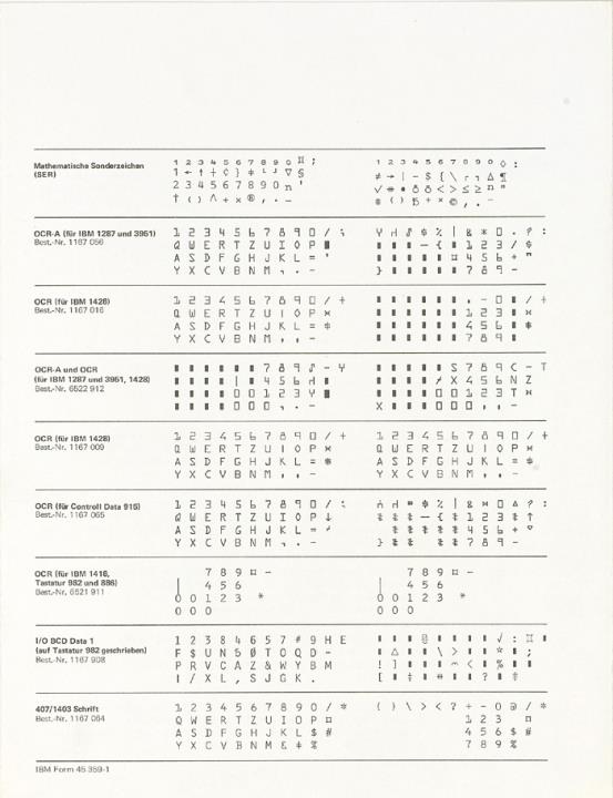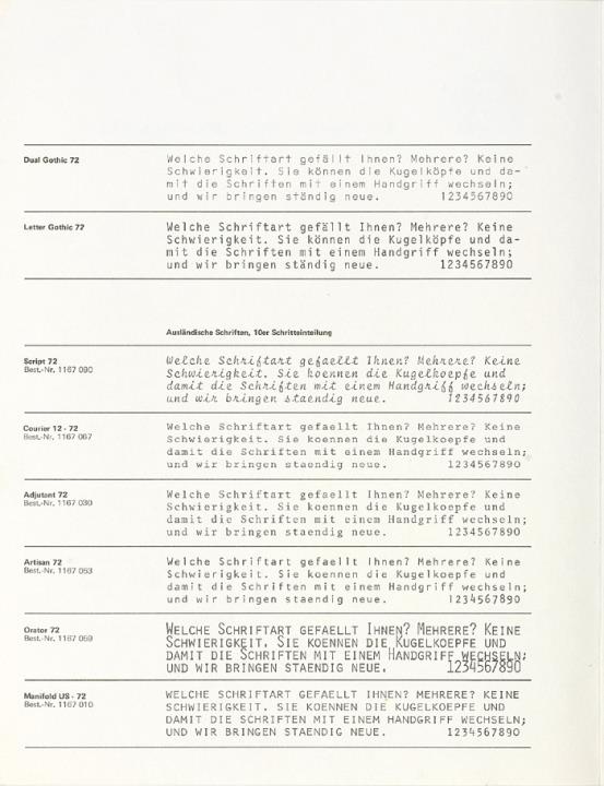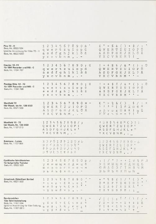 Schriftartenverzeichnis für IBM Kugelkopfmaschine Nr. 45359-1