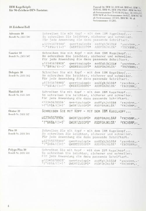 Schriften für die IBM Kugelkopfschreibmaschinen