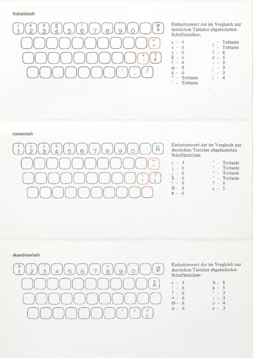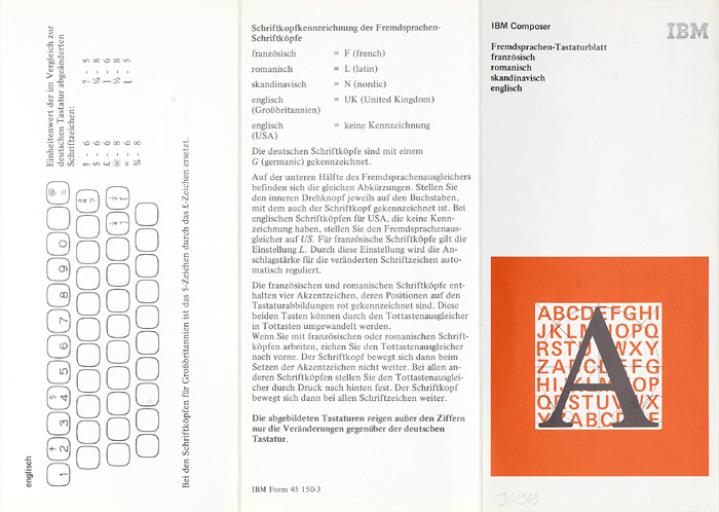 Faltprospekt zu Tastaturblatt in französisch, romanisch, skandinavisch, englisch für Kugelkopfschreibmaschine IBM Composer Nr. 45150-3