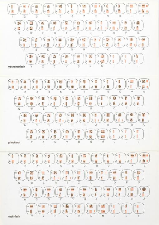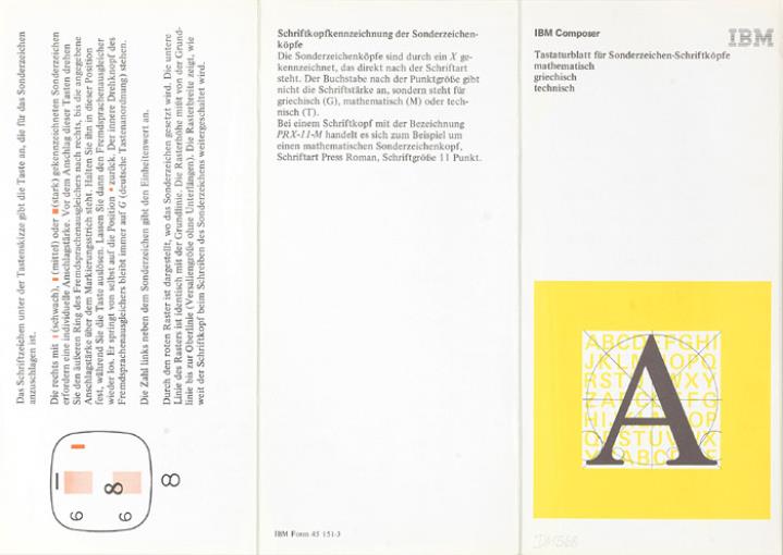 Faltprospekt zu Tastatursonderzeichen mathematisch, griechisch, technisch für Kugelkopfschreibmaschine IBM Composer Nr. 45151-3