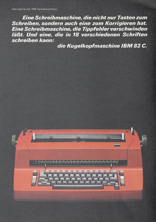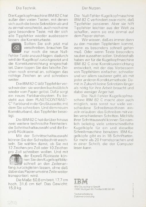 Prospekt für Kugelkopfschreibmaschine IBM 82 C Eine Schreibmaschine, die nicht nur Tasten zum Schreiben, sondern auch eine zum Korrigieren hat [...] Nr. 45114-0