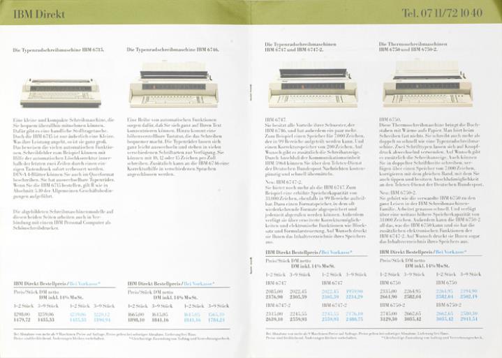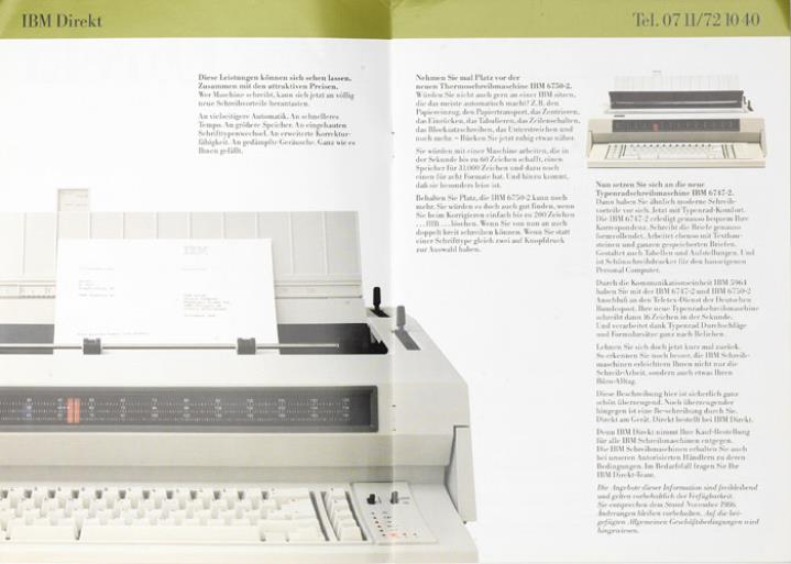 Prospekt für elektrische Schreibmaschine IBM Was die alles leisten, läßt sich sehr gut beschreiben