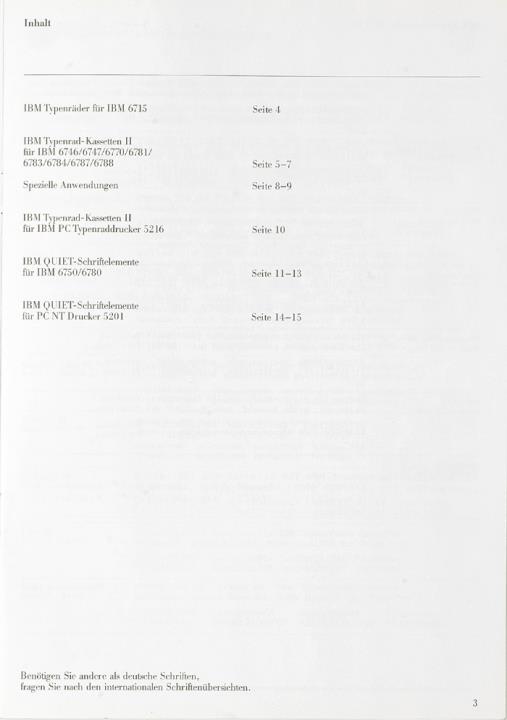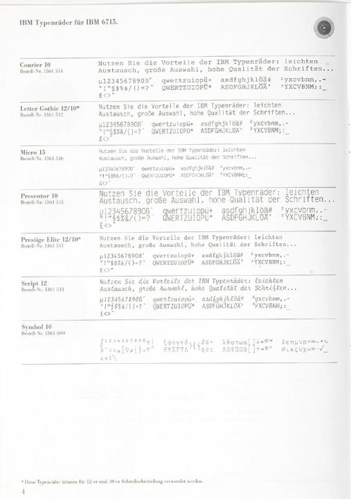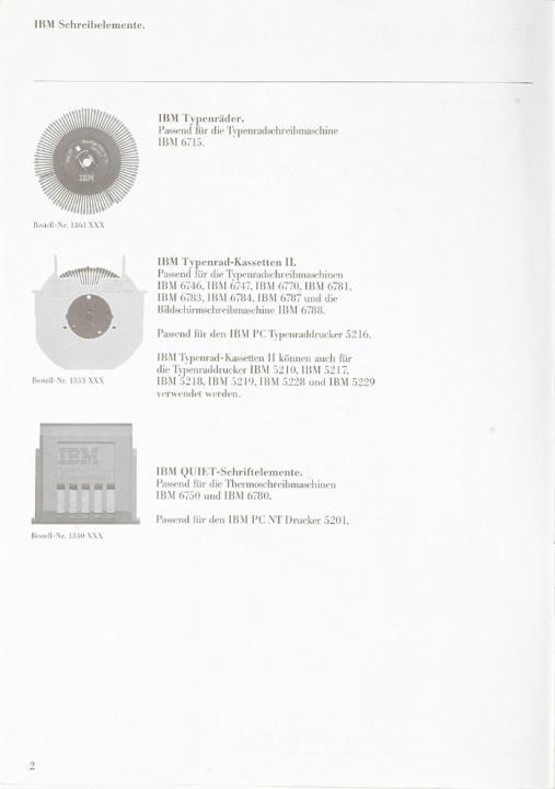 Prospekt zu Typenrädern, Typenrad-Kassetten II und Quiet-Schriftelementen für elektrische Schreibmaschine IBM; Stand November 1988