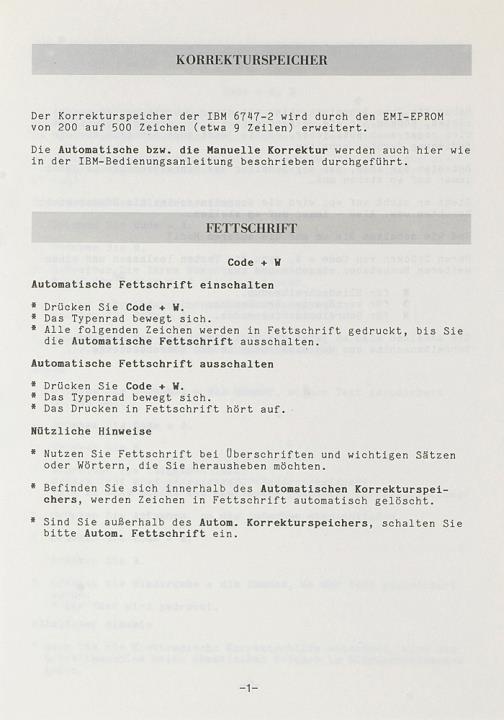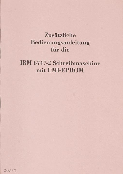 Zusätzliche Bedienungsanleitung für die IBM 6747-2 Schreibmaschine mit EMI-EPROM