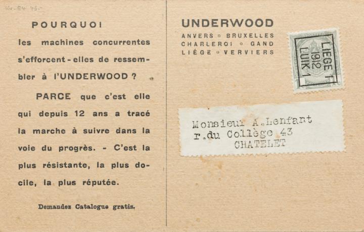 Next to literature on the history of technology, of the typewriter and the office, the Archive holds patent letters, textbooks and instruction manuals as well as historical postcards, letters, photographs and various kinds of advertising (leaflets and brochures, advertising stamps, newspaper ads, posters and signs, promotional gifts).