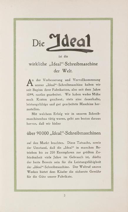 Prospekt für Schreibmaschine Ideal; mit Zubehör, Preisliste und Schriftartenverzeichnis Nr. 3048