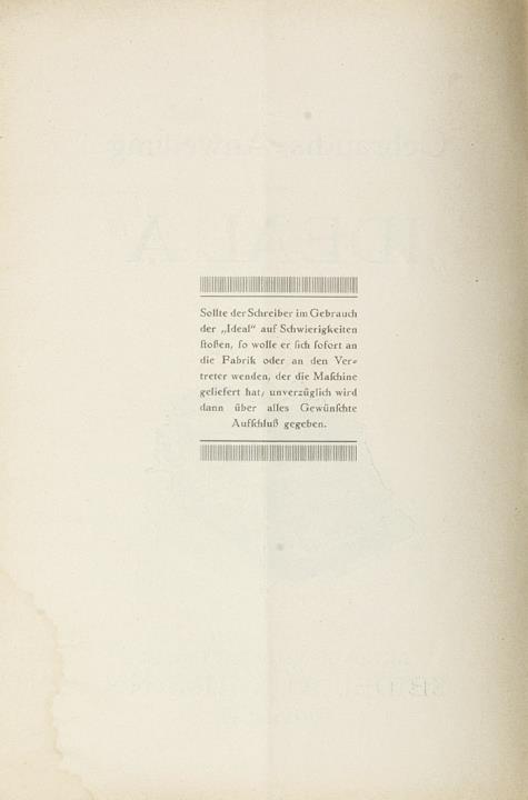 Bedienungsanleitung für Schreibmaschine Ideal A Nr. 3003 Umschlag Grafik: Kriwus, zwei Exemplare (eines fotokopiert/gebunden)