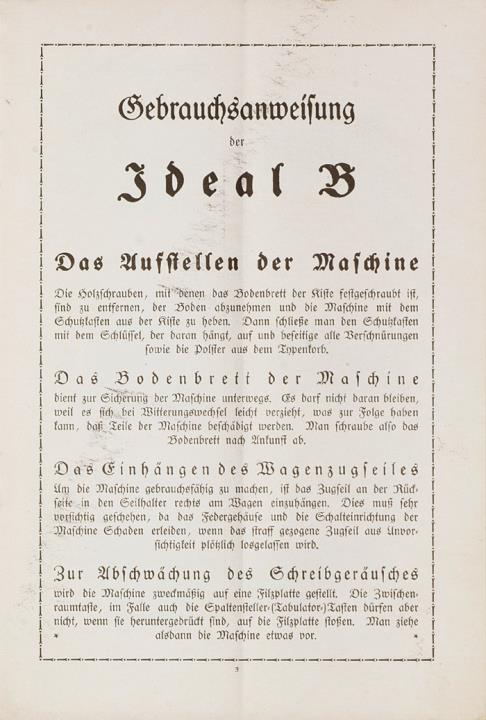 Die Schreibmaschine Ideal B Anleitung für den Gebrauch