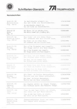 Schriftartenverzeichnis für Schreibmaschine Triumph-Adler Nr. 01601801/1083/50/40