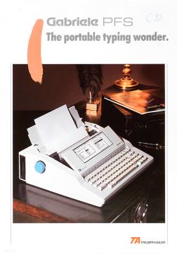 Faltprospekt für elektronische Schreibmaschine Triumph-Adler Gabriele PFS The portable typing wonder Nr. WE01172402/0390/10/23