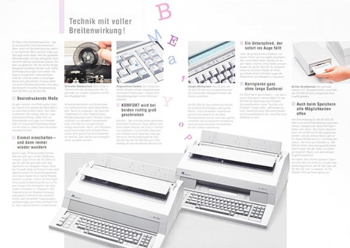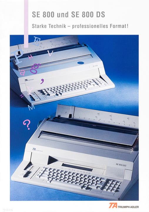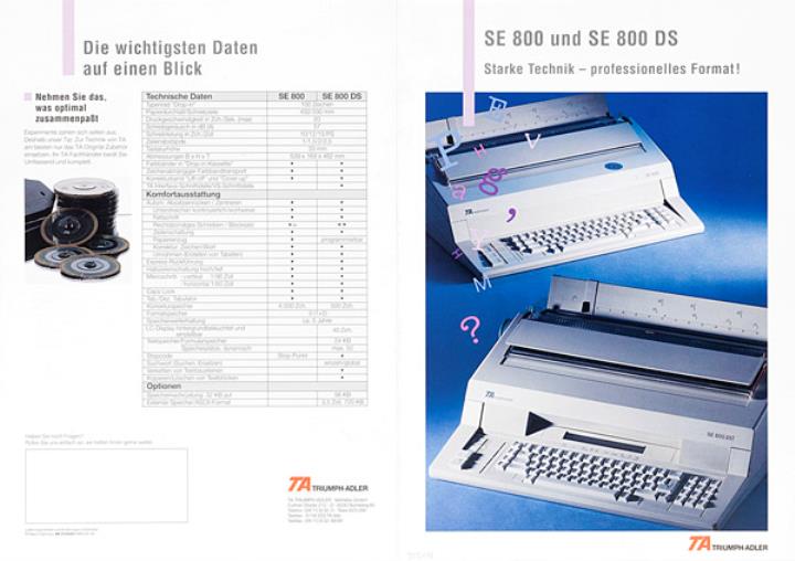 Faltprospekt für elektronische Schreibmaschine Triumph-Adler SE 800 Starke Technik - professionelles Format! NR. WE01150301/0892/20/40