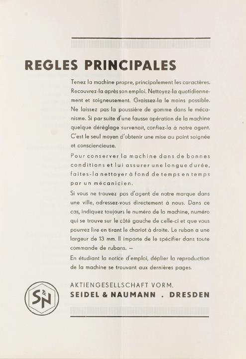 Bedienungsanleitung für Schreibmaschine Ideal Nr. Sv 5548 franz.