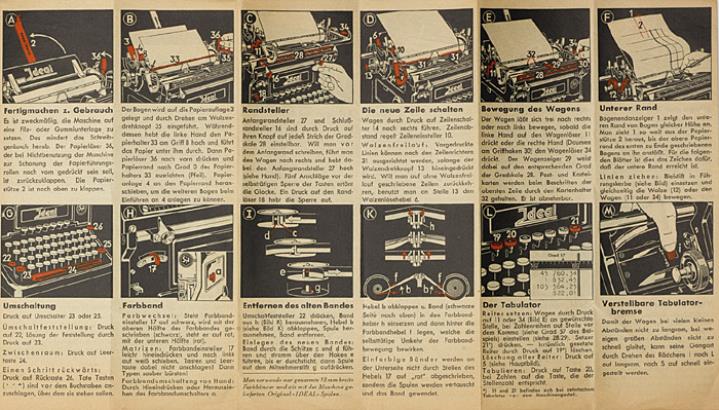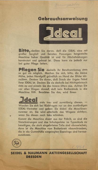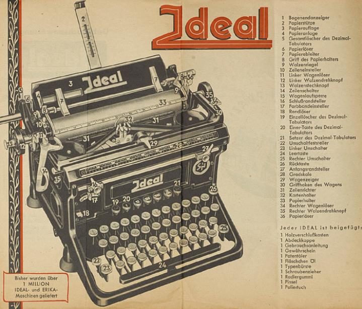 Bedienungsanleitung für Schreibmaschine Ideal Nr. Sv 5594 a ap TE, zwei Exemplare (eines fotokopiert, gebunden)