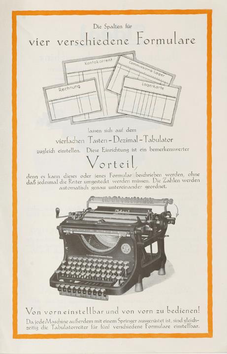 Next to literature on the history of technology, of the typewriter and the office, the Archive holds patent letters, textbooks and instruction manuals as well as historical postcards, letters, photographs and various kinds of advertising (leaflets and brochures, advertising stamps, newspaper ads, posters and signs, promotional gifts).