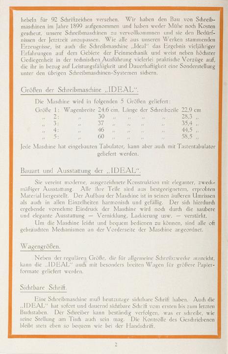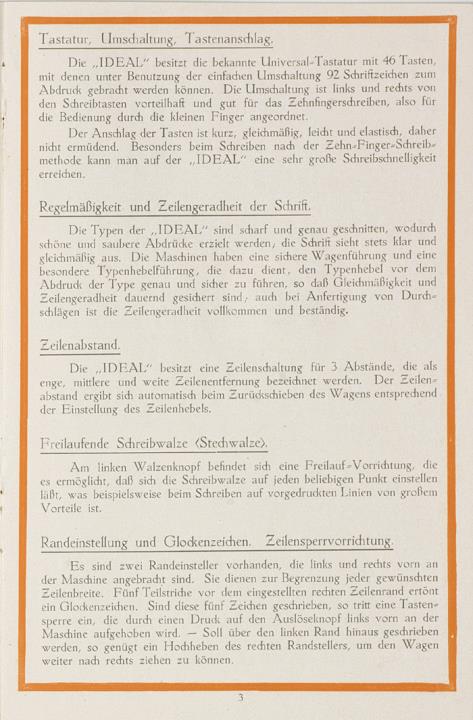 Prospekt für Schreibmaschine Ideal, Schriftarten und Tastaturen Nr. 946.11.20.5.10 Druck: Leutert & Schneidewind Dresden