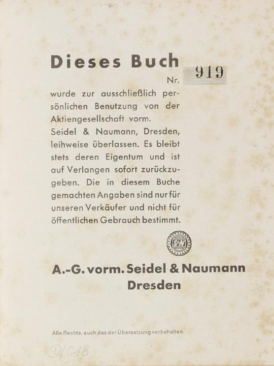 Informationsbroschüre für Verkäufer von Schreibmaschinen Ideal Buch Nr. 919; beiliegend Revers. Nr. 3083.9.31.1.