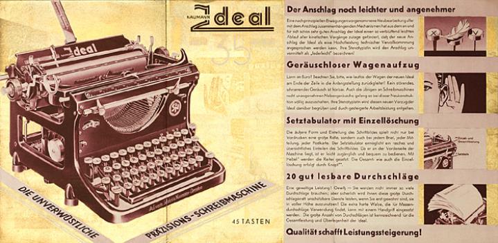 Faltprospekt für Schreibmaschine Ideal Nr. S 7103 y p px TRE.