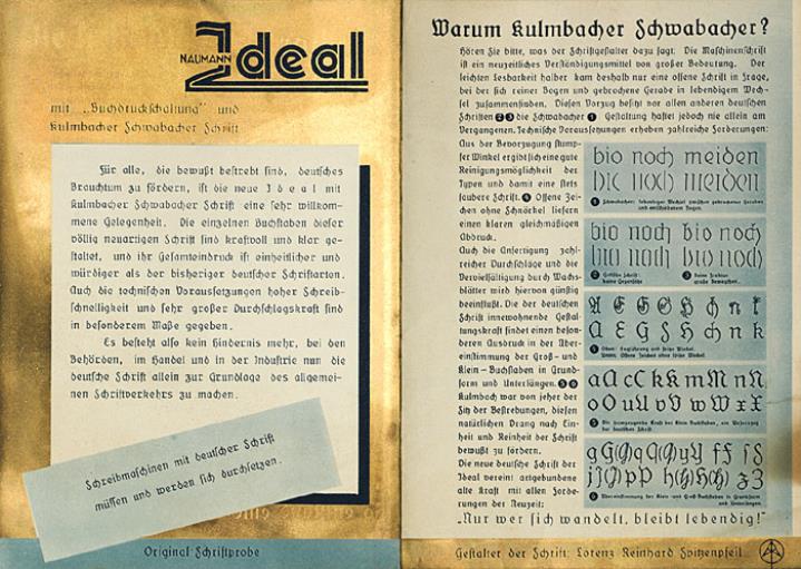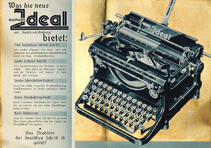 Faltprospekt für Schreibmaschine Ideal mit deutscher Schrift So schön und leicht lesbar wie Buchdruck! Nr. S 7151 y-pg PEX