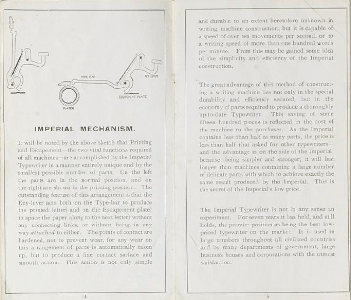 Bedienungsanleitung für Schreibmaschinen Imperial For all Nations Tongues and uses; 1915 price list, zwei Exemplare (eines fotokopiert/gebunden)
