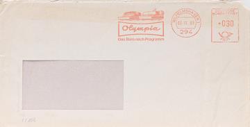 Briefumschlag mit Absenderfreistempel des Schreibmaschinenherstellers Olympia Stempel: Wilhelmshaven/03.11.1966, Werbung Olympia, Wert Deutsche Bundespost 30 Pf.