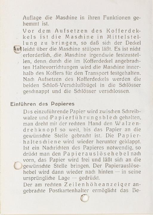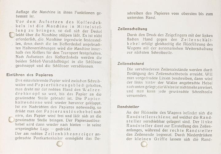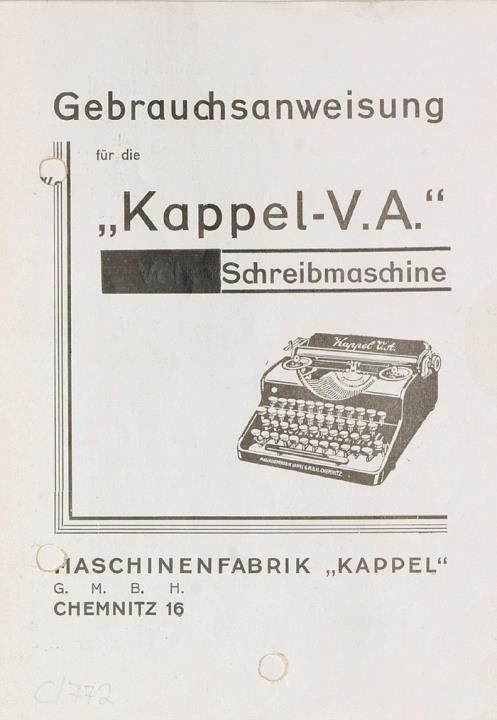 Gebrauchsanweisung für die Kappel-V.A. Schreibmaschine