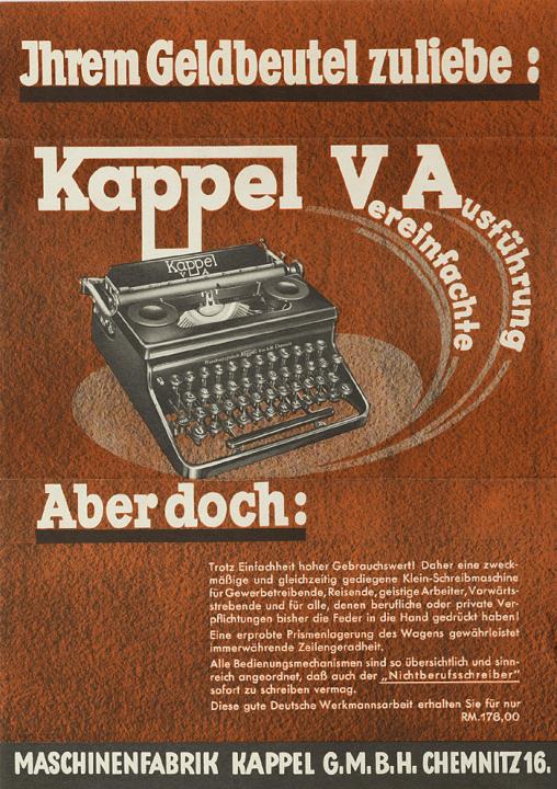 Prospekt für Kleinmaschine Kappel VA Vereinfachte Ausführung