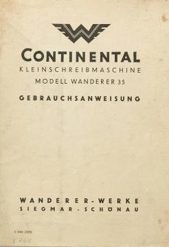 Bedienungsanleitung für Kleinschreibmaschine Continental Wanderer 35 Nr.C 6344 (3365)