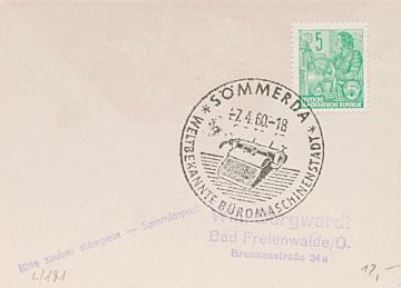 Briefumschlag mit Sonderstempel Sömmerda/07.04.60-18; Briefmarke DDR 5 Pf.