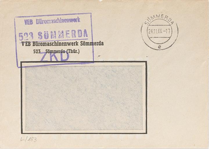 Briefumschlag mit Firmendruck der VEB Büromaschinenwerk Sömmerda datiert Sömmerda/24.11.1966