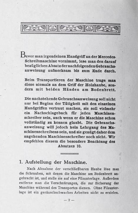 Anleitung zum Gebrauche der Mercedes-Schreibmaschine