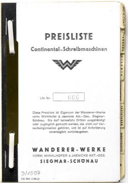 Prospekt und Preisliste für Schreibmaschine Continental Nr. CA 3002 (1381,5) vgl. Inv. Nr. B441