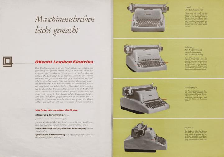 Prospekt für Schreibmaschine Olivetti Lexikon Elettrica (80E) Nr. 3901764 E / P 3-217 Te.