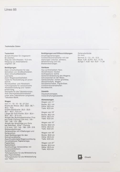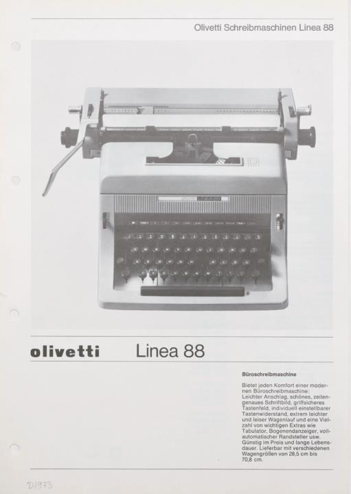 Prospekt für Büroschreibmaschine Linea 88
