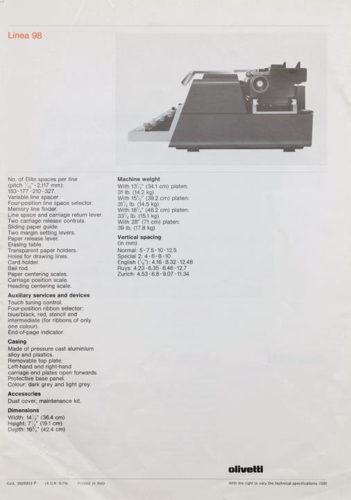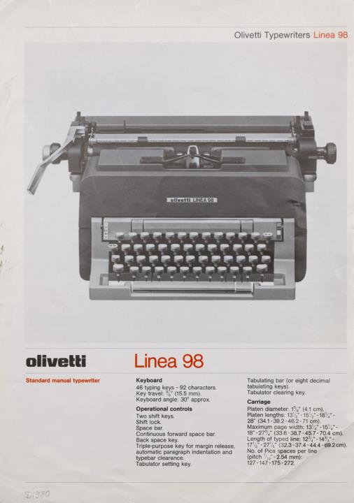 Prospekt für Büroschreibmaschine Linea 98 Nr. 3926903 P (AGN 5-79) GB