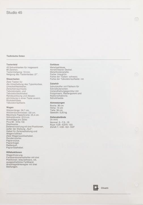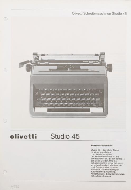 Prospekt für Reiseschreibmaschine Olivetti Studio 45