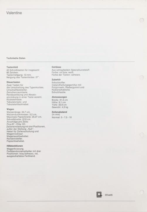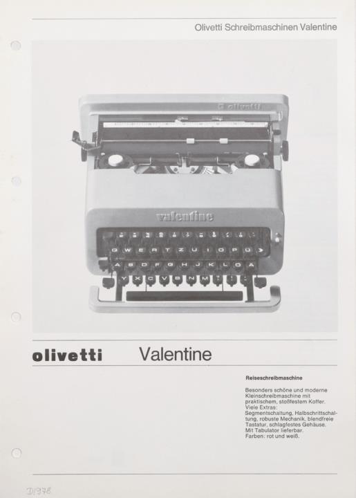 Prospekt für Reiseschreibmaschine Olivetti Valentine
