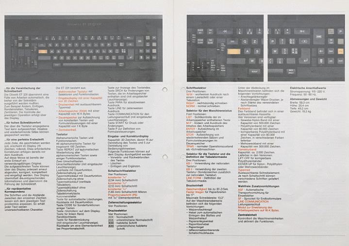 Faltprospekt für elektronische Schreibmaschine mit Display und Speicher Olivetti ET 231 Nr. 5-81 / 3925304 T