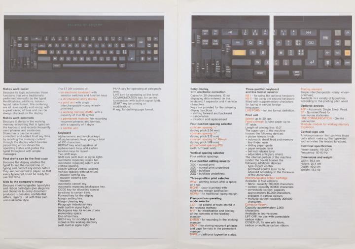 Faltprospekt für elektronische Schreibmaschine mit Display und Speicher Olivetti ET 231 Nr. 3925303 E (AGN 11-80) GB