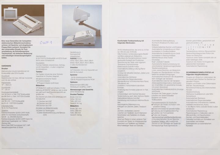 Faltprospekt für elektronische Bildschirmschreibmaschine Olivetti CWP 1 Nr. 3/89