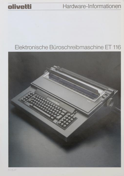 Faltprospekt für elektronische Büroschreibmaschine Olivetti ET 116 Nr. 03/019/ET/3.86