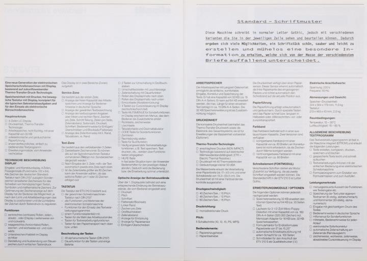 Faltprospekt für elektronische Speicherschreibmaschine Olivetti ETV 210 S Nr. 4/88