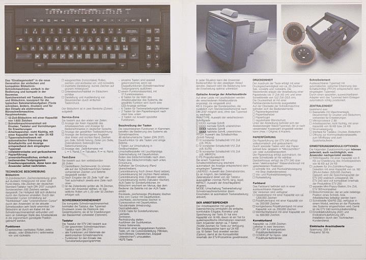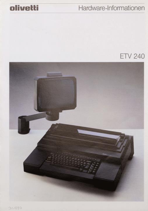 Faltprospekt für elektronische Bildschirmschreibmaschine Olivetti ETV 240 Nr. 3927194 C/03/004/ETV/85 (4-85) D