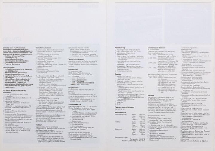 Faltprospekt für elektronische Bildschirmschreibmaschine Olivetti ETV 260