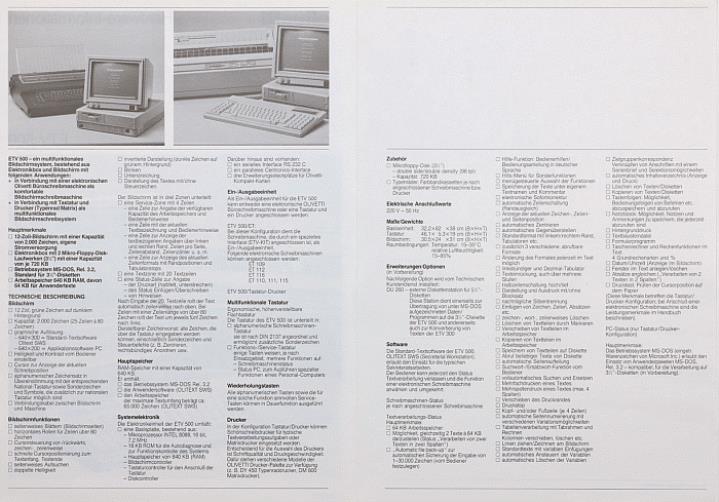 Faltprospekt für elektronische Bildschirmschreibmaschine Olivetti ETV 500